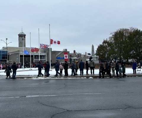 Large crowd battles bitter cold in Belleville to pay respects on Remembrance Day