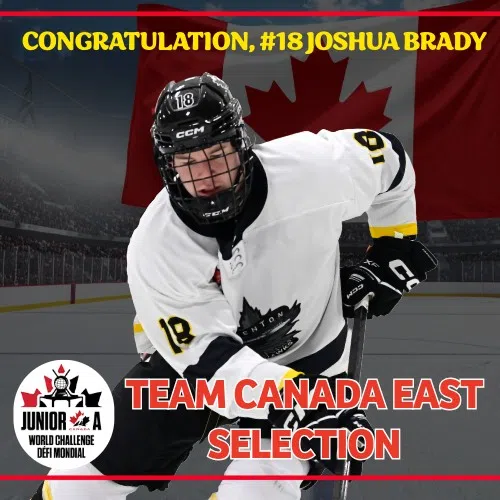 Defenceman Josh Brady, recently acquired from the Pickering Panthers, was named to Team Canada East’s Roster this week.
