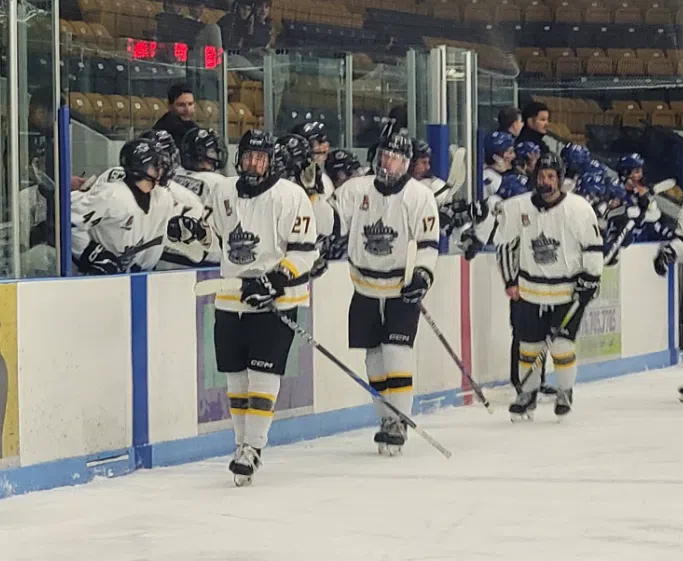 Josh Brady tied the score in the second, rushing in after Isaiah Shantz loosened the puck from a Royals player’s stick and tapping the disc past Noah Caballero, but Andrew Brees answered less than two minutes later and the Royals carried that lead into what turned out to be a wild third frame.