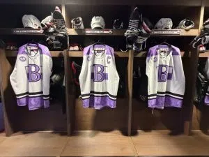 Hockey Fights Cancer Warmup Jerseys worn Saturday and Sunday to be auctioned off online. PHOTO: Belleville Senators