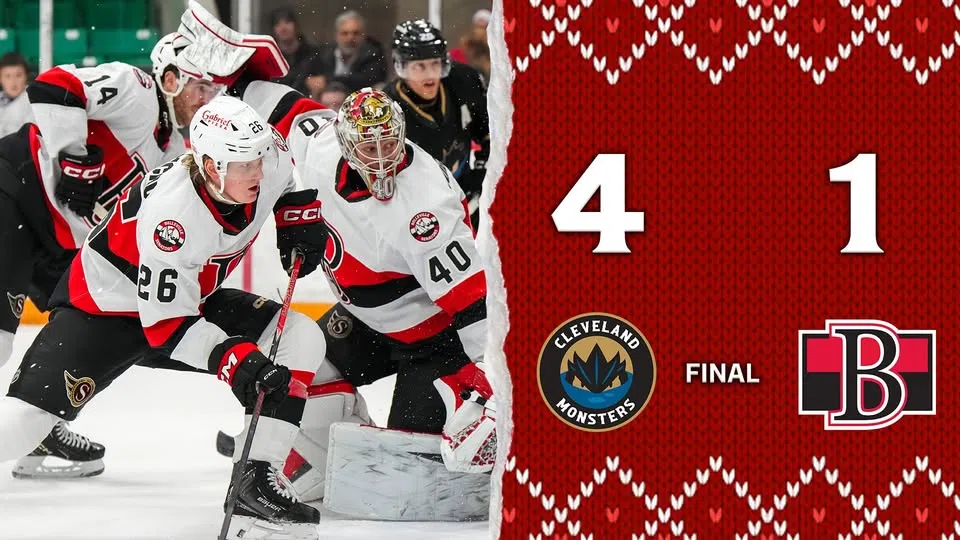 The Belleville Senators were left frustrated in a 4-1 loss to the Cleveland Monsters on Saturday night.