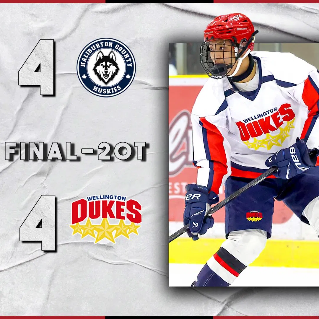 The Dukes overcame a four-goal deficit after two periods to take a 4-4 tie out of the Haliburton County Huskies.