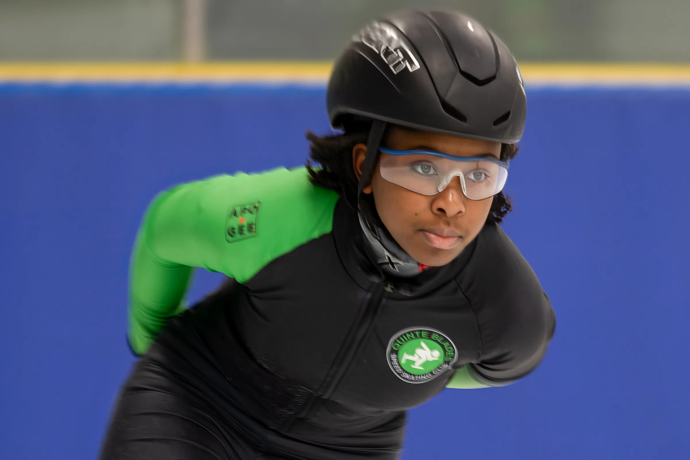14-year-old Lois Wint-Rose of the Quinte Blades Speed Skating Club skated strongly in Barrie at the Ontario Winter Games and brought back Bronze in 3000m team relay.