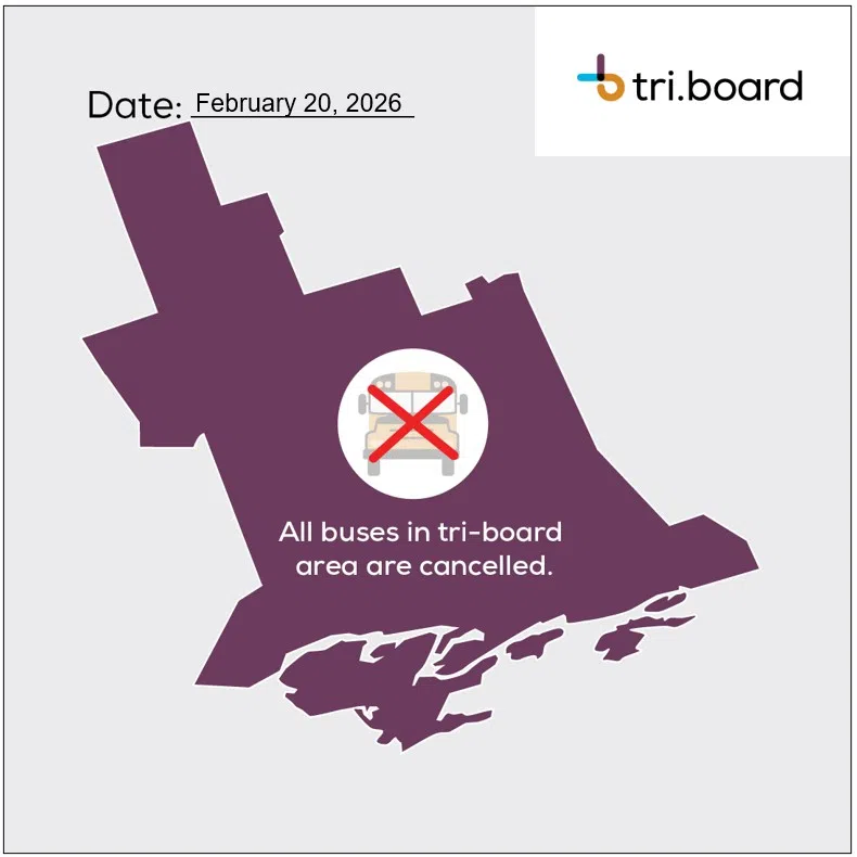 NOTICE – Due to heavy snow expected during the afternoon travel period, all school bus and taxi transportation is cancelled in the Tri-Board Student Transportation Services service area today.