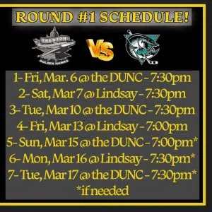 Playoff series schedules for both teams were released by the OJHL on Monday.