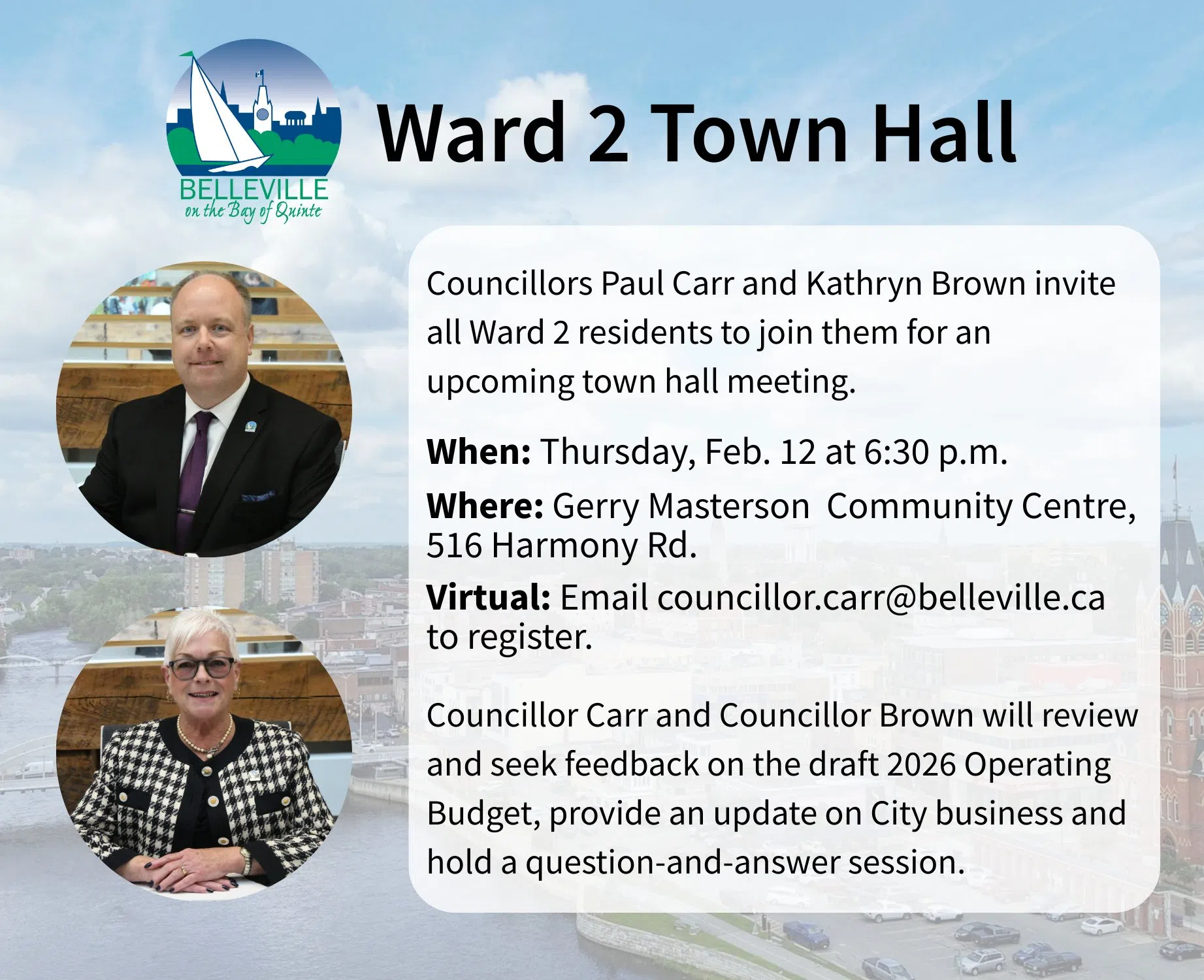 Thurlow Ward residents can get face-to-face conversations going with its representatives on Belleville City Council on Thursday evening. Couns. Paul Carr and Kathryn Brown will hold a Ward 2 Town Hall...