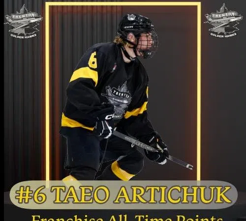 A back-and-forth game ended in a third straight win for the Trenton Golden Hawks on Sunday night. The Hawks beat the Pickering Panthers 7-4 to keep pace with the Stouffville Spirit for top spot in the East Conference. Jake Mallory put Pickering up one, before the Hawks secured a milestone moment. Taeo Artichuk, the Haw...