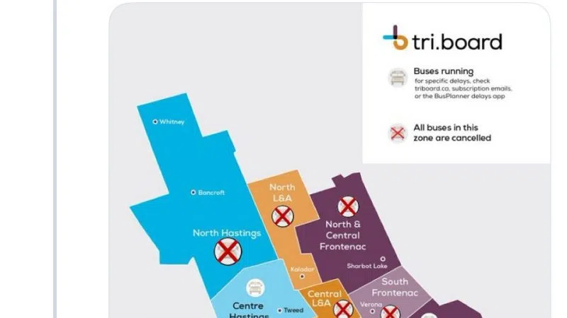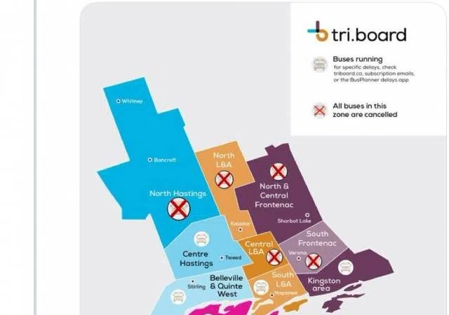 The lingering impact of last weekend's winter storm is still being felt in northern parts of the Quinte Region. Due to ongoing snow covered & icy conditions on many secondary roads & side streets transportation is cancelled in Tri-Board's North Hastings, North & Central Lennox & Addington, North, Centra...